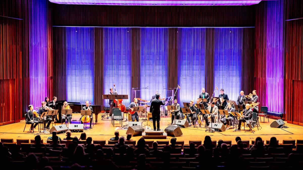 Guitarist Jake Hertzog leads a Concerto for Electric Guitar and Jazz Orchestra with String Quartet.