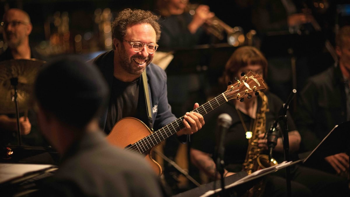 And then, when I’m playing a solo or melody on the guitar, and the ensemble comes with a written passage that warmly supports what I’m playing? There’s no feeling like that. It’s just amazing. Or when somebody else is soloing and I can craft an environment for that person just by setting up with the horns a spontaneous, improvised texture or riff, that inspires the soloist to go even further? It’s addictive, and probably why I keep coming back to this ensemble.